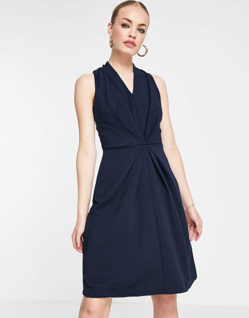 Closet London twist front midi dress in navy