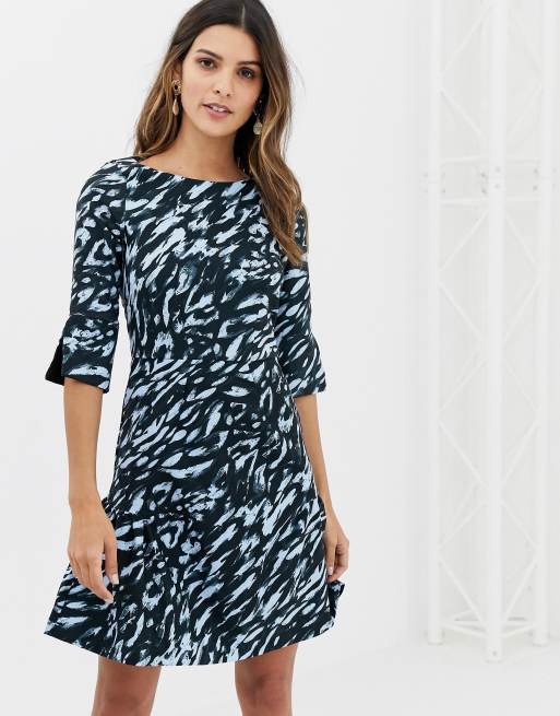 Closet Printed Gathered Skirt Split Sleeve Dress