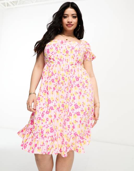 Collective the Label Curve tiered midi dress in pink floral