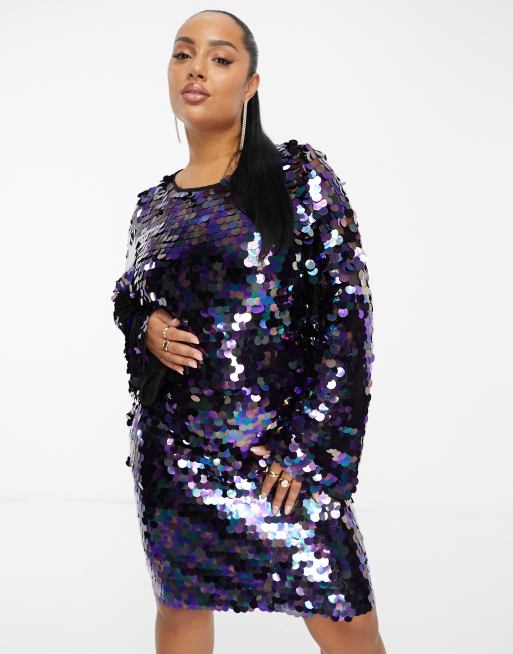 Collective the Label Plus exclusive disc sequin mini dress in petrol mix