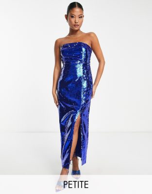 Collective the Label Petite exclusive leg split sequin midaxi dress in cobalt