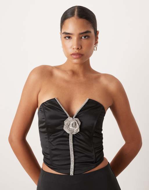 Collective The Label Diamante corsage corset top in black satin