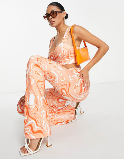 Collective the Label exclusive crop top and flare trouser co-ord in retro swirl