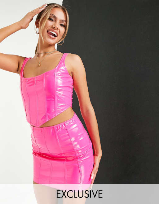 Collective the Label exclusive high shine PVC square neck top co-ord in pop pink