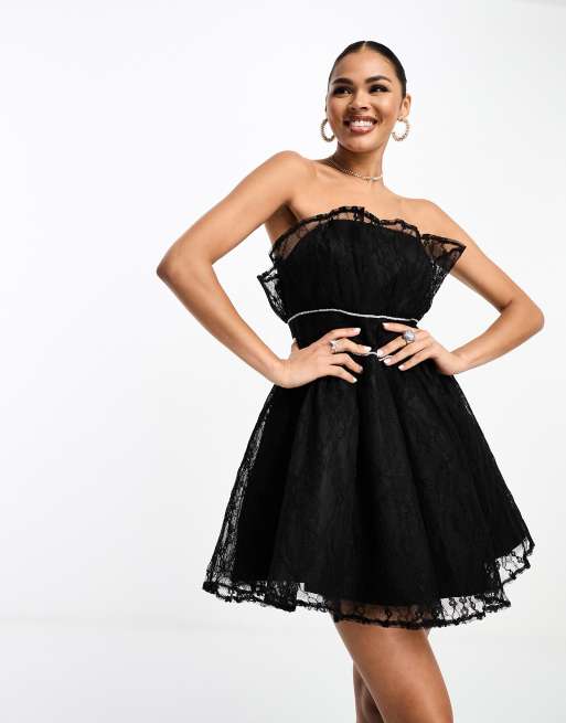 Collective the Label exclusive lace bandeau mini dress with diamante waist in black