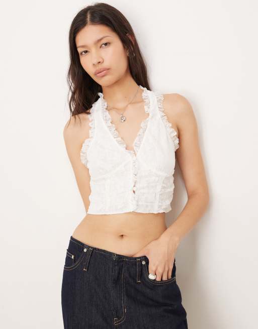 Collective The Label Fitted lace top with ruffle trim in off white lace
