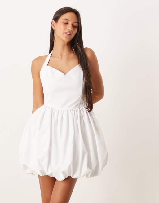 Collective The Label Puffball halterneck mini dress in white