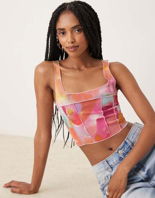 Collective The Label Raw seam crop top in multi watercolour flower