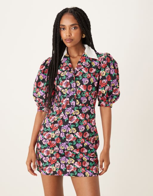 Collective The Label Shirt mini dresses in multi graphic rose white