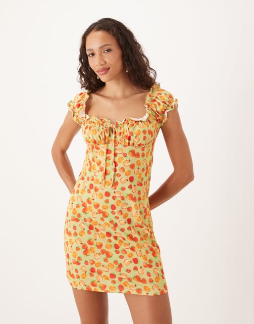 Collective The Label Short sleeve a line mini dress in apple green fruit