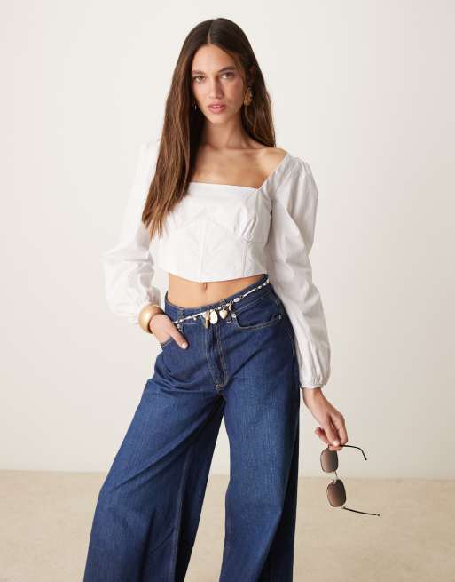 Collective The Label Square neck cropped corset top in white