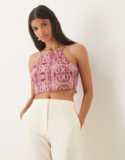 Collective The Label Tie back cropped cami top in raspberry snakeskin