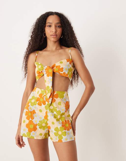 Collective The Label Tie front strappy crop top in retro daisy floral
