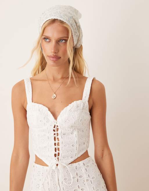 - Broderie anglaise: lightweight fabric with an embroidered, cut-out pattern