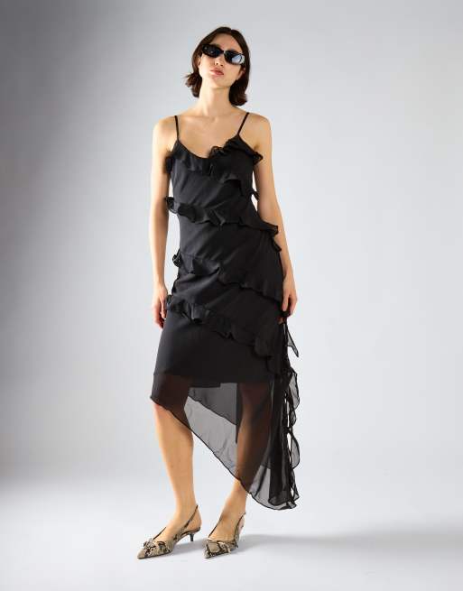 Collective The Label Waterfall ruffle maxi-dress in black