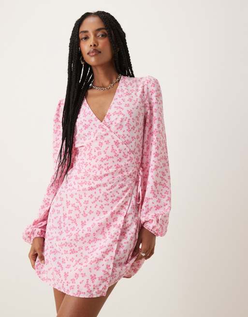 Collective The Label Wrap mini dress in pink fuschia ditsy