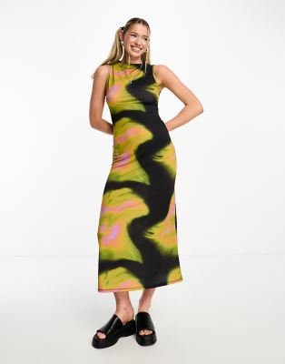 COLLUSION abstract printed slash neck maxi dress in multi