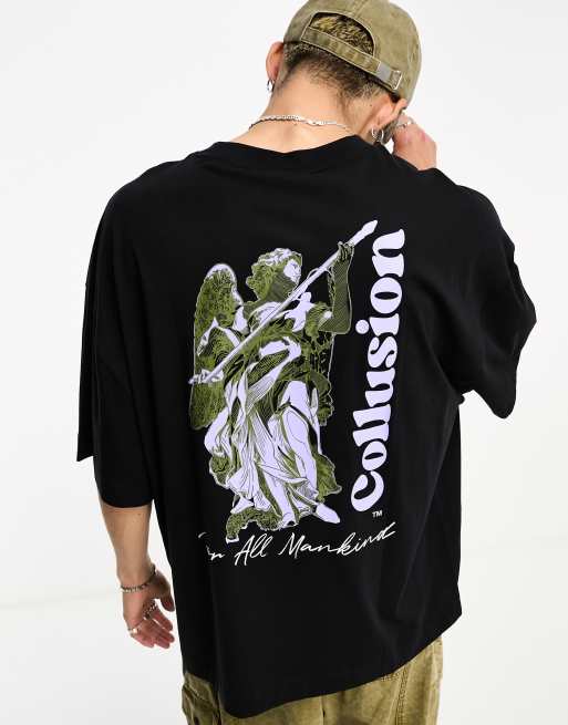 COLLUSION angel back print t-shirt in black