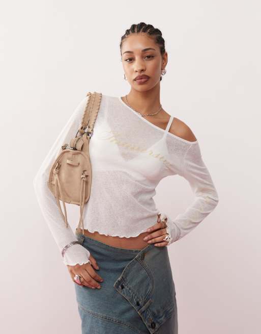 COLLUSION asymmetric neck tonal flock top