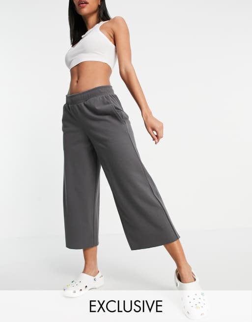 COLLUSION awkward length raw hem pique jogger in charcoal