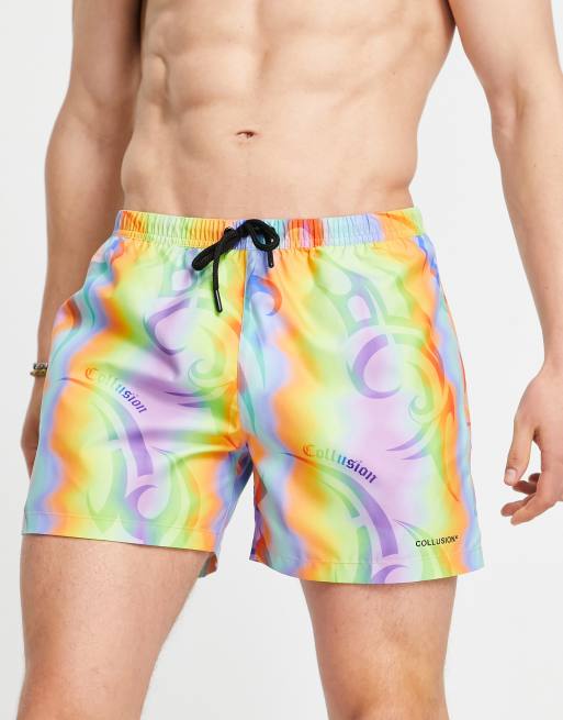 COLLUSION blurred rainbow print shorter length swim short in multi