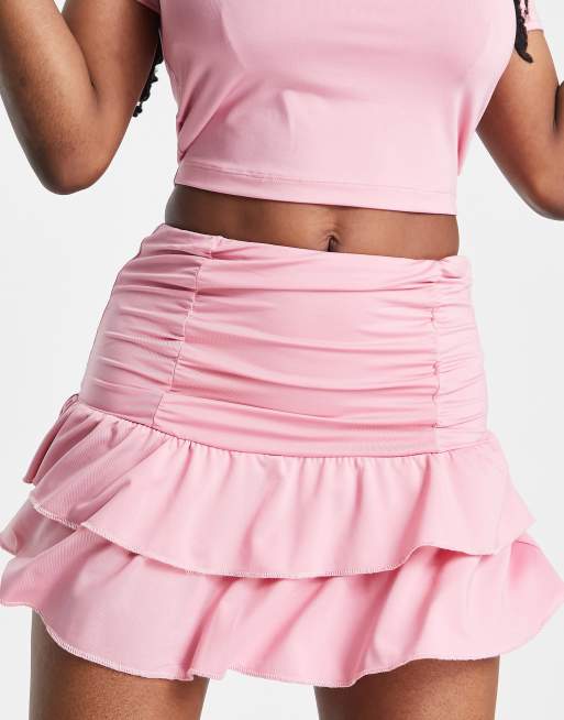 COLLUSION branded ruche rara mini skirt co-ord in pink
