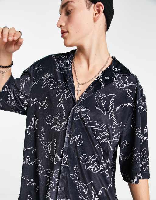 COLLUSION branded velour oversized shirt in black