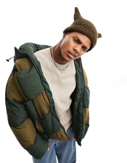 COLLUSION checkered quilted puffer jacket in tonal khaki