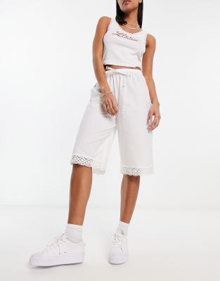 COLLUSION cotton poplin lace trim 3/4 length short in white