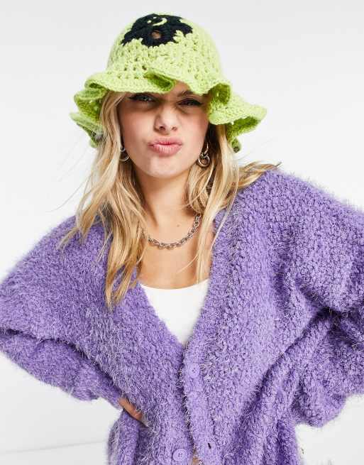 COLLUSION crochet bucket hat with flower design in lime