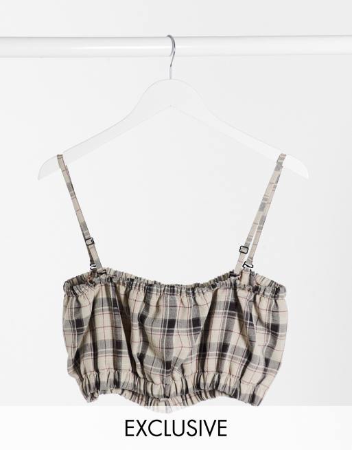 COLLUSION cropped check bralet co-ord in sage green