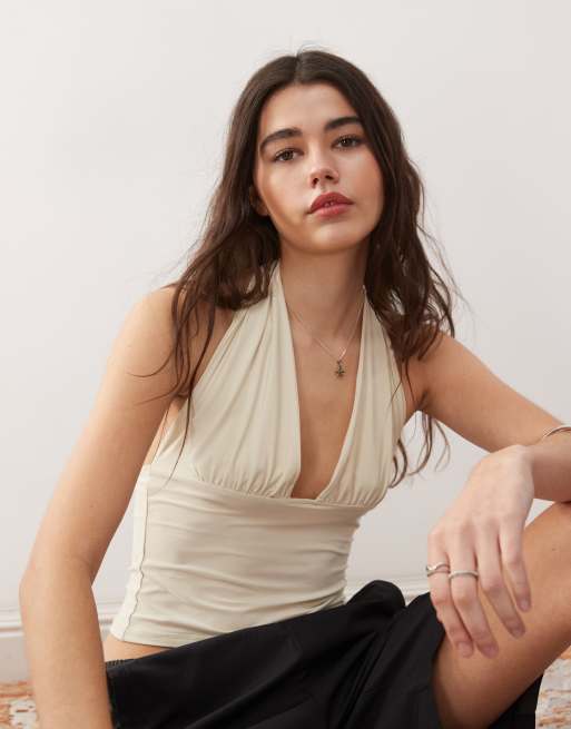 COLLUSION cupro longline slinky halter top in cream