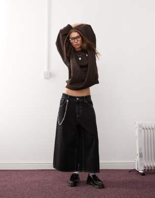COLLUSION denim culotte in black