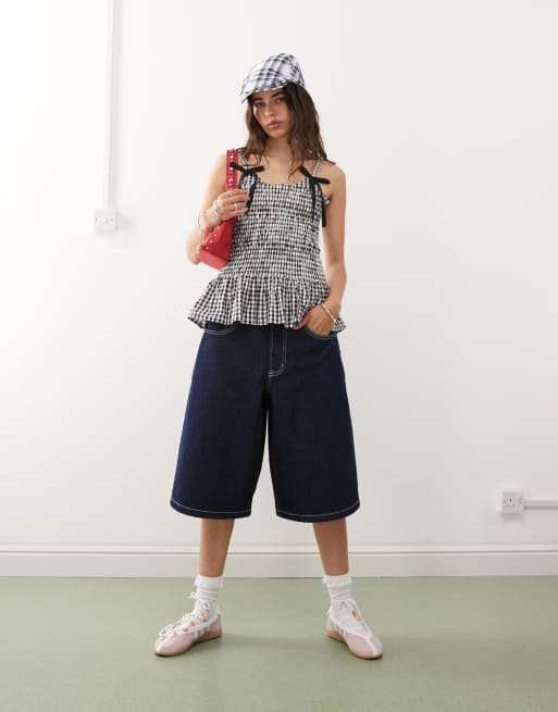 COLLUSION denim skater jorts with contrast stitch in mid blue