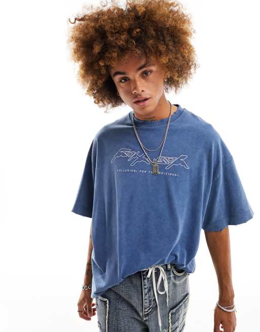 COLLUSION Distressed logo t-shirt in blue