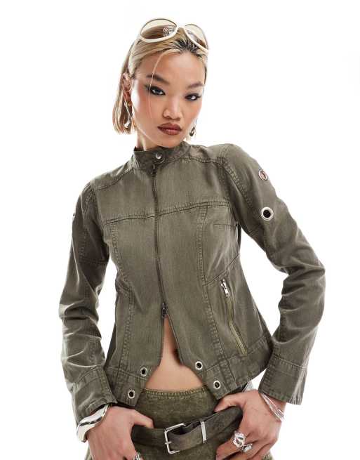 COLLUSION festival moto jacket with eyelets in oil wash co-ord