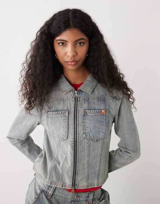 COLLUSION fitted denim jacket with double ended zip in light wash