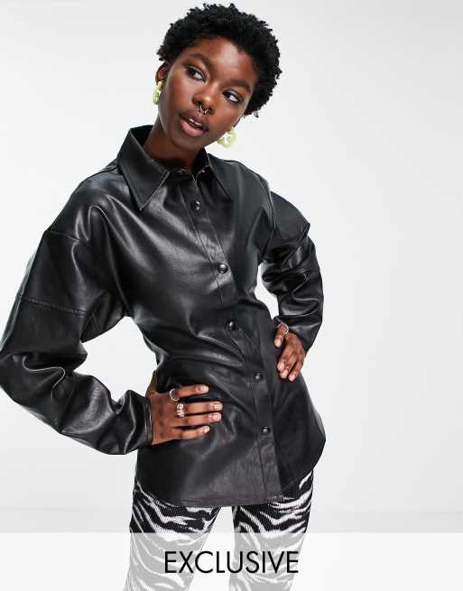 COLLUSION fitted PU shirt in black