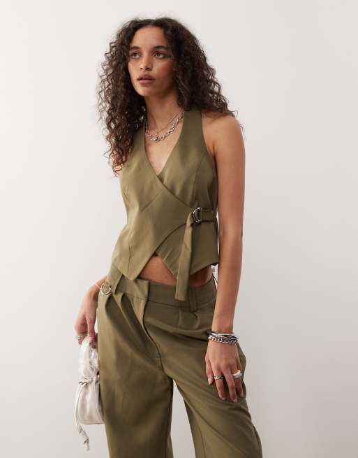COLLUSION fitted tailored waistcoat co-ord in khaki