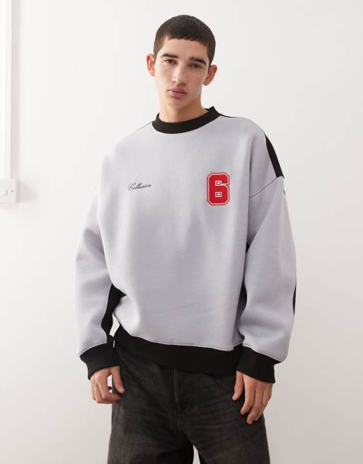 COLLUSION Football oversized boxy sweatshirt in grey and black with embroidery