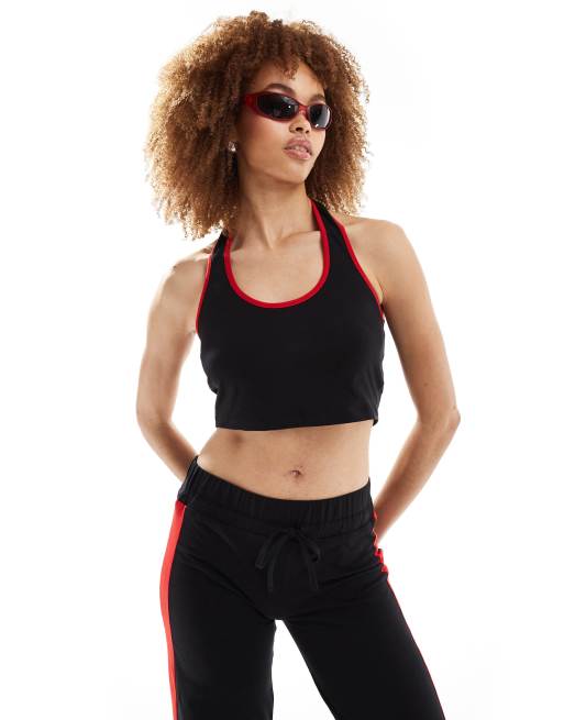 COLLUSION halter top co ord with contrast binding in black
