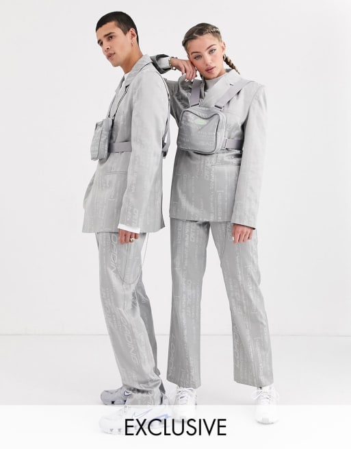 COLLUSION jacquard straight leg trousers with detachable chain & blazer