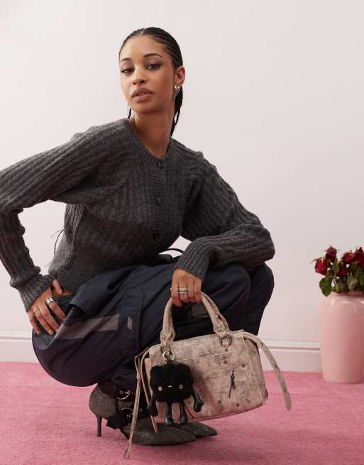 COLLUSION knit button up cropped cardi in grey
