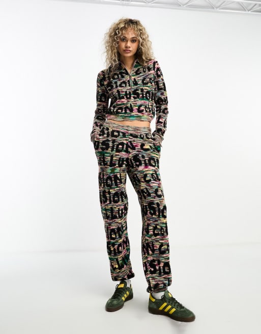 COLLUSION knitted branded zip front jumper and joggers in grey space dye