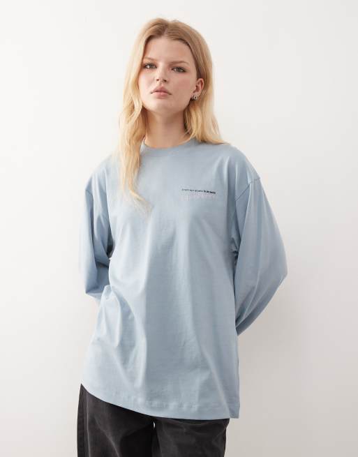COLLUSION long sleeve graphic tee in washed blue