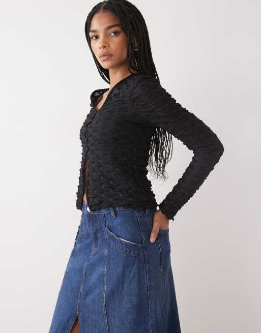 COLLUSION long sleeve textured cardigan in black