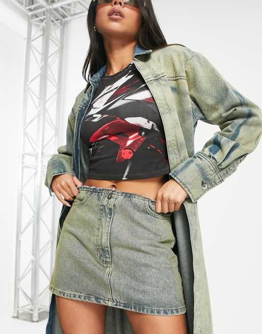 COLLUSION micro mini Y2K yellow washed denim skirt co-ord in blue