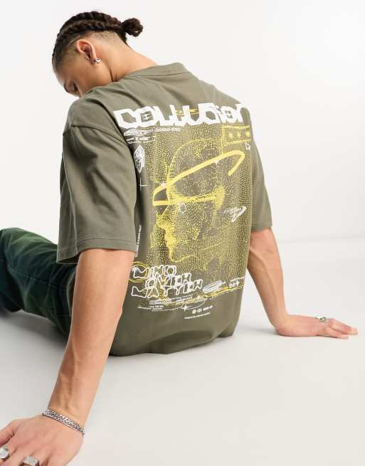 COLLUSION mind over matter graphic print pique t-shirt in mushroom