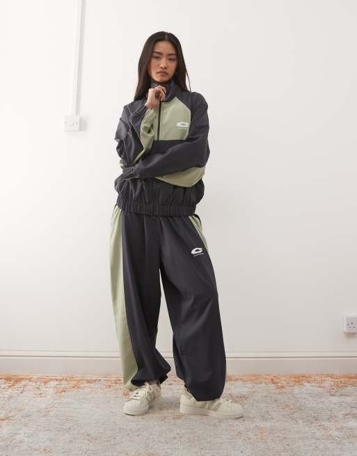 COLLUSION nylon sports jogger co-ord in black and khaki