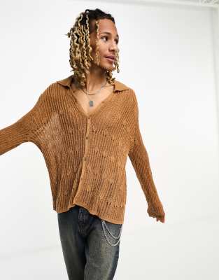 COLLUSION open stitch knitted shirt in rust